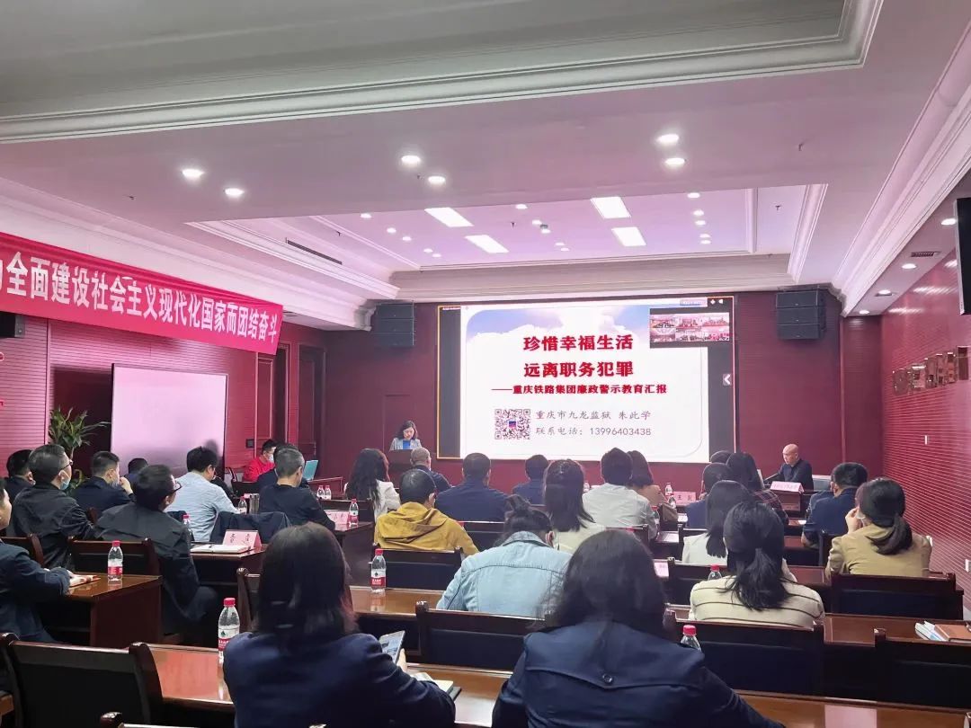 為深入開展學(xué)習(xí)貫徹習(xí)近平新時(shí)代中國特色社會主義思想主題教育,貫徹落實(shí)黨的二十大精神和二十屆中央紀(jì)委二次全會、六屆市紀(jì)委二次全會部署,持續(xù)推動全面從嚴(yán)治黨向縱深發(fā)展,5月11日,市鐵路集團(tuán)舉辦學(xué)習(xí)貫徹習(xí)近平新時(shí)代中國特色社會主義思想主題教育第二期讀書班黨風(fēng)廉政建設(shè)警示教育講座暨2023年第二季度黨風(fēng)廉政建設(shè)重點(diǎn)人員預(yù)防教育會,邀請重慶市九龍監(jiān)獄黨委副書記、政委朱此學(xué)作了題為《珍惜幸福生活 遠(yuǎn)離職務(wù)犯罪》的專題講座。集團(tuán)黨委領(lǐng)導(dǎo)班子、中層管理人員,所屬單位領(lǐng)導(dǎo)班子成員、中層管理人員,支部書記及黨員代表,集團(tuán)本部和所屬各單位黨風(fēng)廉政建設(shè)重點(diǎn)人員以及參加集團(tuán)紀(jì)檢干部隊(duì)伍教育整頓的全體紀(jì)檢人員、新進(jìn)黨員等共計(jì)300余人參加會議。會議由集團(tuán)黨委委員、監(jiān)事會主席陳靜主持。