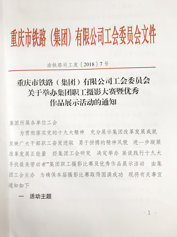 為貫徹落實黨的十九大精神充分展示集團(tuán)改革發(fā)展成就反映廣大干部職工奮發(fā)進(jìn)取、勇于拼搏的精神風(fēng)貌市鐵路集團(tuán)工會擬于近期舉辦“畫說踐行十九大尋找最美勞動者”職工攝影比賽