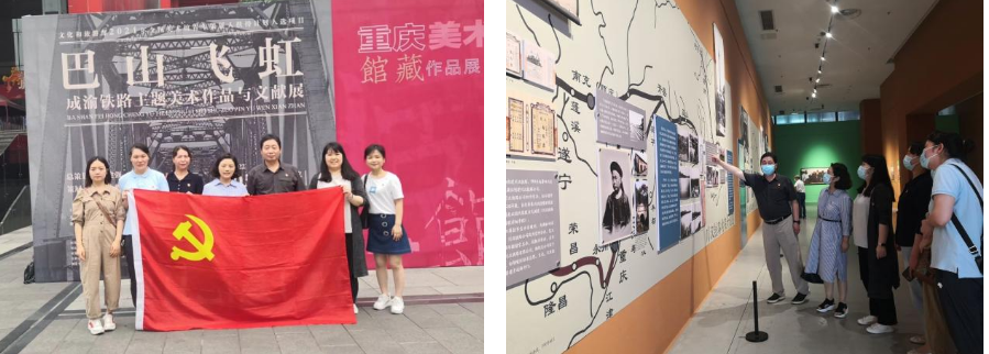 活動簡介:6月8日下午,集團審法財務黨支部在集團監(jiān)事會主席、工會主席陳靜和財務總監(jiān)馬明澤的帶領(lǐng)下,來到重慶美術(shù)館開展“喜迎二十大,感受成渝鐵路建設發(fā)展”主題黨日活動。活動成效:活動中,一行人仔細參觀了“巴山飛虹——成渝鐵路主題美術(shù)作品與文獻展”,展覽共展出了“速度成渝鐵路”主題美術(shù)作品和文獻資料100余件,涵蓋連環(huán)畫、攝影、油畫、雕塑等多種形式,全面展示了七十年來“成渝鐵路”主題創(chuàng)作的歷史變遷。參觀結(jié)束后,大家紛紛表示,對歷史最好的致敬就是書寫新的歷史,將立足崗位職責,認真做好各項本職工作,為推動都市快線事業(yè)高質(zhì)量發(fā)展作出應有貢獻。