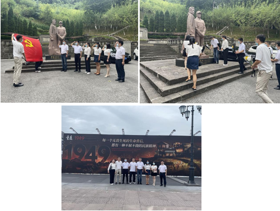 活動簡介:為推動黨史學習教育常態(tài)化長效化,引導全體黨員牢記黨的宗旨、珍惜黨員身份、永葆先進本色,7月22日,規(guī)劃發(fā)展部黨支部組織開展“追尋紅色記憶,傳承革命精神”主題黨日活動。全體黨員前往紅巖文化景區(qū)歌樂山松林坡參觀學習,以重溫入黨誓詞和獻花儀式表達對英雄們深切的懷念及崇高的敬意。活動還組織觀看了歷史舞臺劇《重慶·1949》?;顒映尚В捍舜位顒幼岦h員們在參觀學習的過程中深入了解了英雄烈士的革命事跡,通過豐富的歷史文物、詳實的文獻資料進一步了解革命的艱苦歷程,追憶英雄們保家衛(wèi)國的豐功偉績。大家紛紛表示,將繼承革命先輩遺志、發(fā)揚優(yōu)良傳統(tǒng),牢記初心使命、堅定理想信念,永葆干事創(chuàng)業(yè)的激情與熱情,自強不息、奮斗不止,為集團的高質(zhì)量發(fā)展貢獻一己之力。